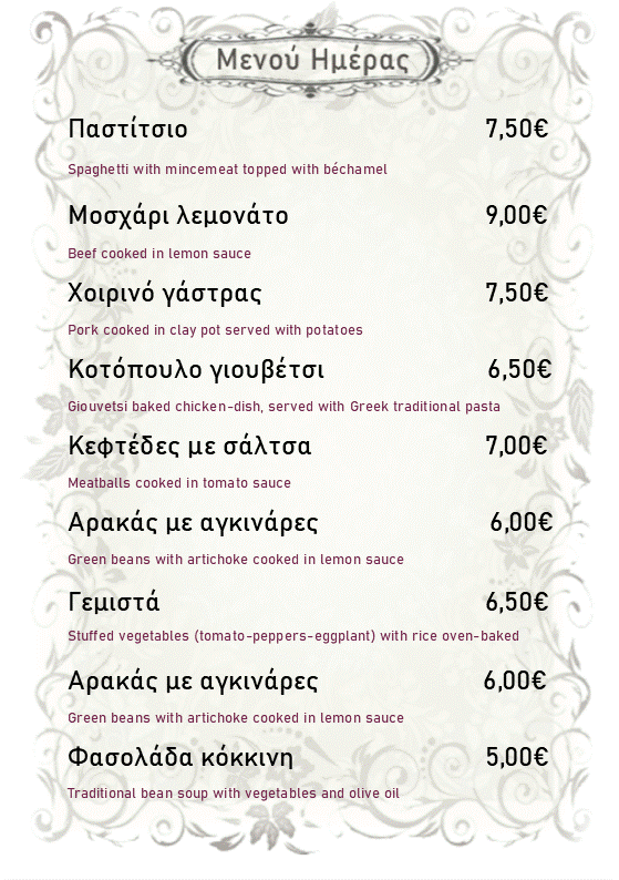Μενού Ημέρας Πέμπτη (08/05/25)